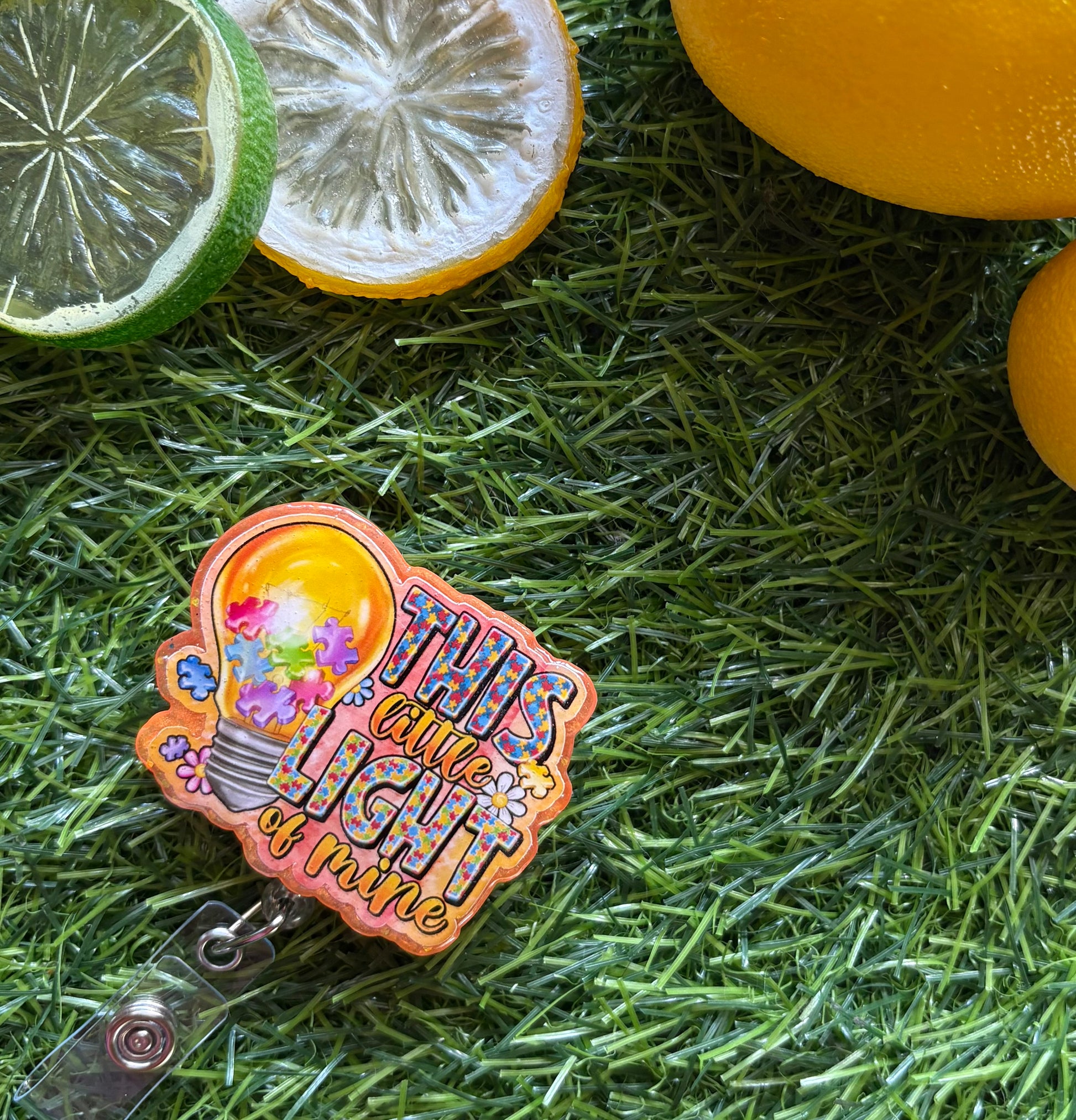 Shine bright every shift with our “This Little Light of Mine” badge reel, featuring a glowing lightbulb filled with colorful puzzle pieces and cheerful flowers. Perfect for nurses, teachers, therapists, and anyone who wants to spread positivity while keeping their ID close at hand.