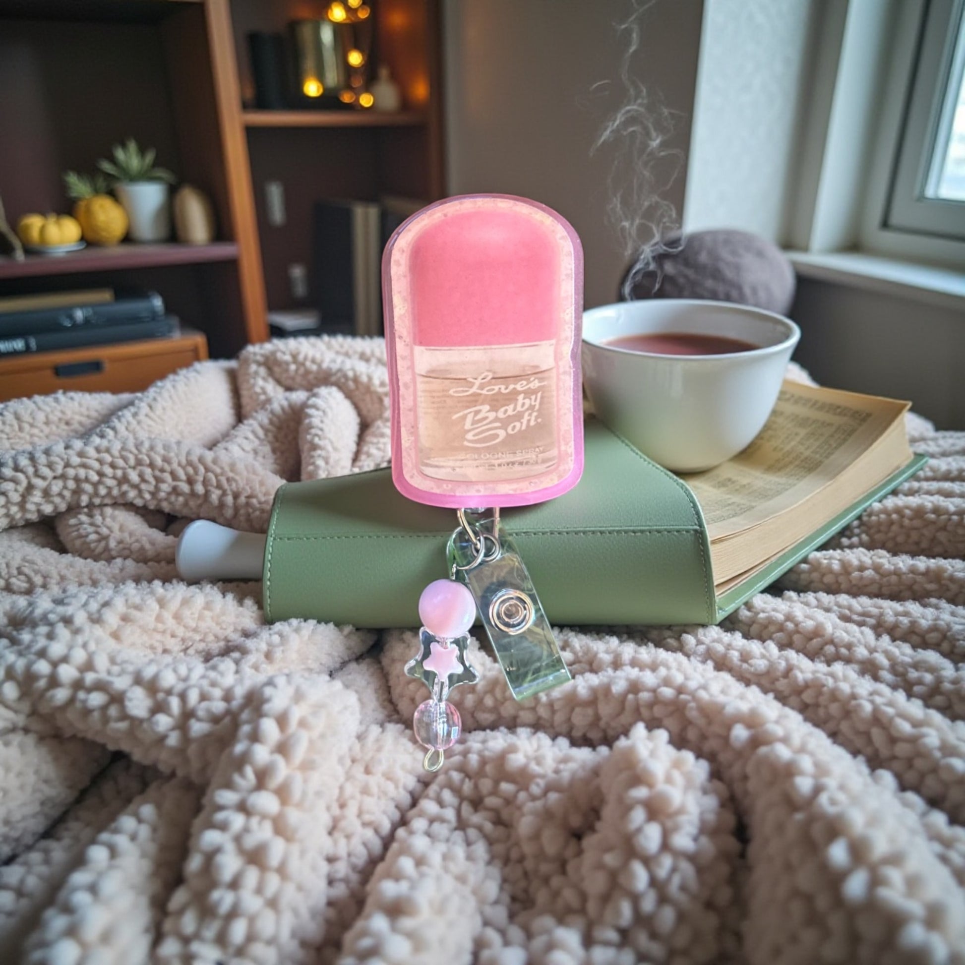 If you grew up smelling like cotton-candy dreams and teenage innocence, this badge reel is about to hit you right in the memories. Inspired by the iconic Love’s Baby Soft perfume, this design brings that soft-pink, powdery-sweet vibe straight to your scrubs.