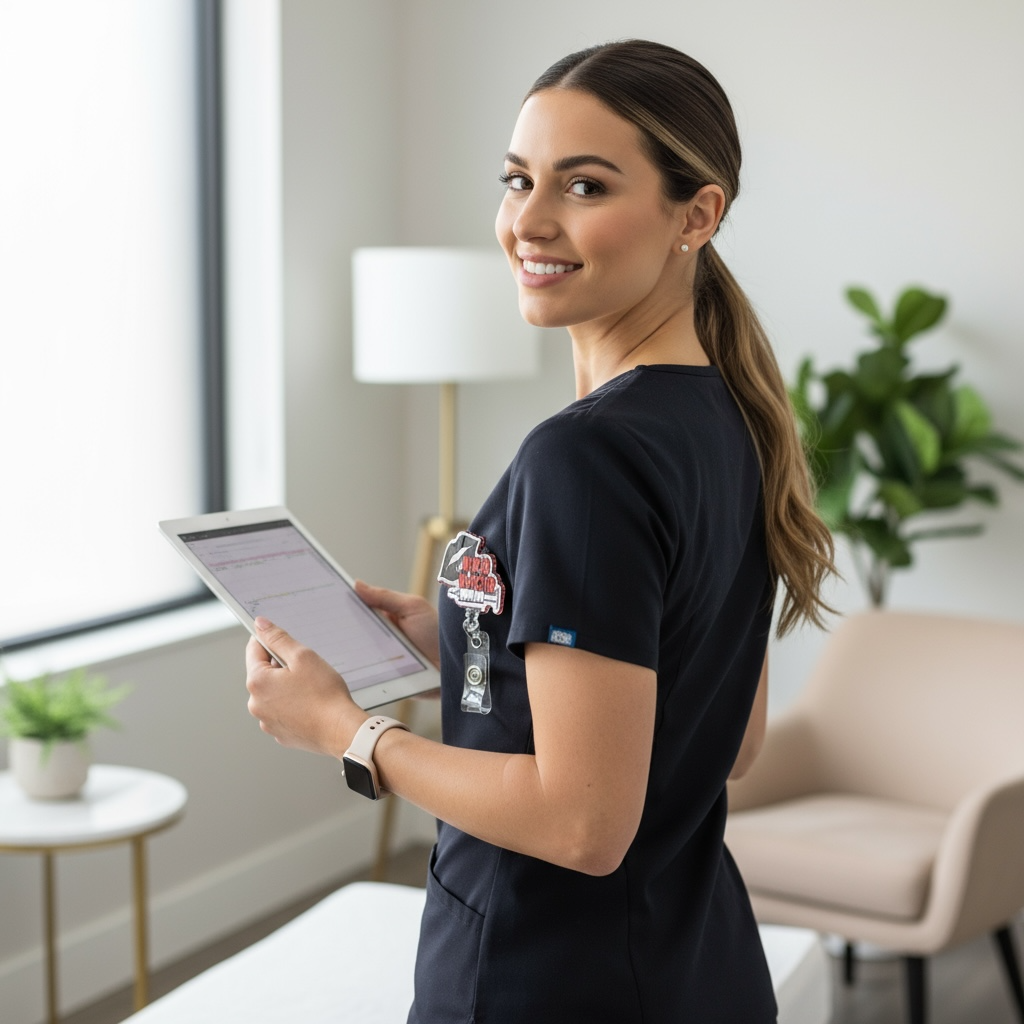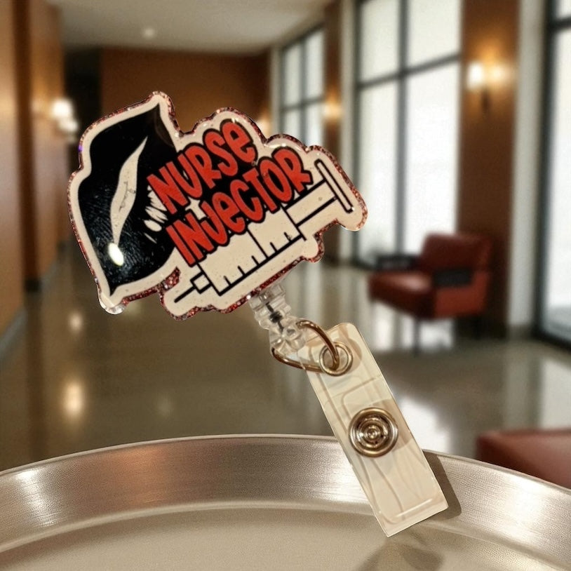 Cosmetic Nurse Badge Reel | Nurse Injector Badge | Aesthetic RN Accessory | Funny Syringe ID Holder | Medical Badge Clip for Med Spa