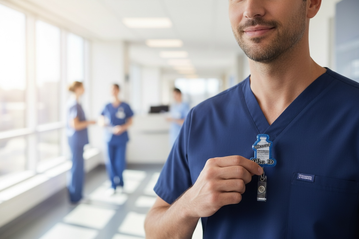This badge reel is the perfect dose of dark humor for ICU, ER, or PACU warriors who’ve heard every variation of “something stronger.”