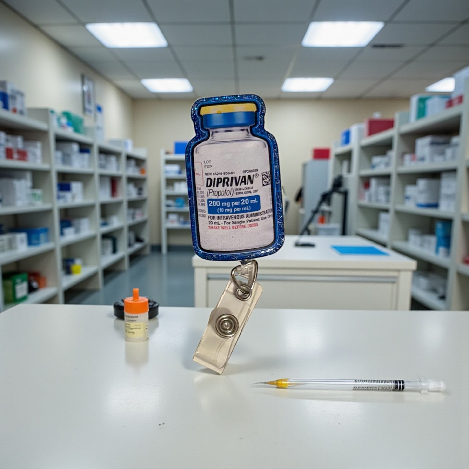 Add some anesthesia humor to your scrubs with this Rocuronium-inspired badge reel! Shaped like a classic vial, this reel is a playful nod to the OR, ER, ICU, and all the places where anesthesia folks work their magic. It’s the perfect mix of functional and funny—keeping your ID secure while showing off your personality.