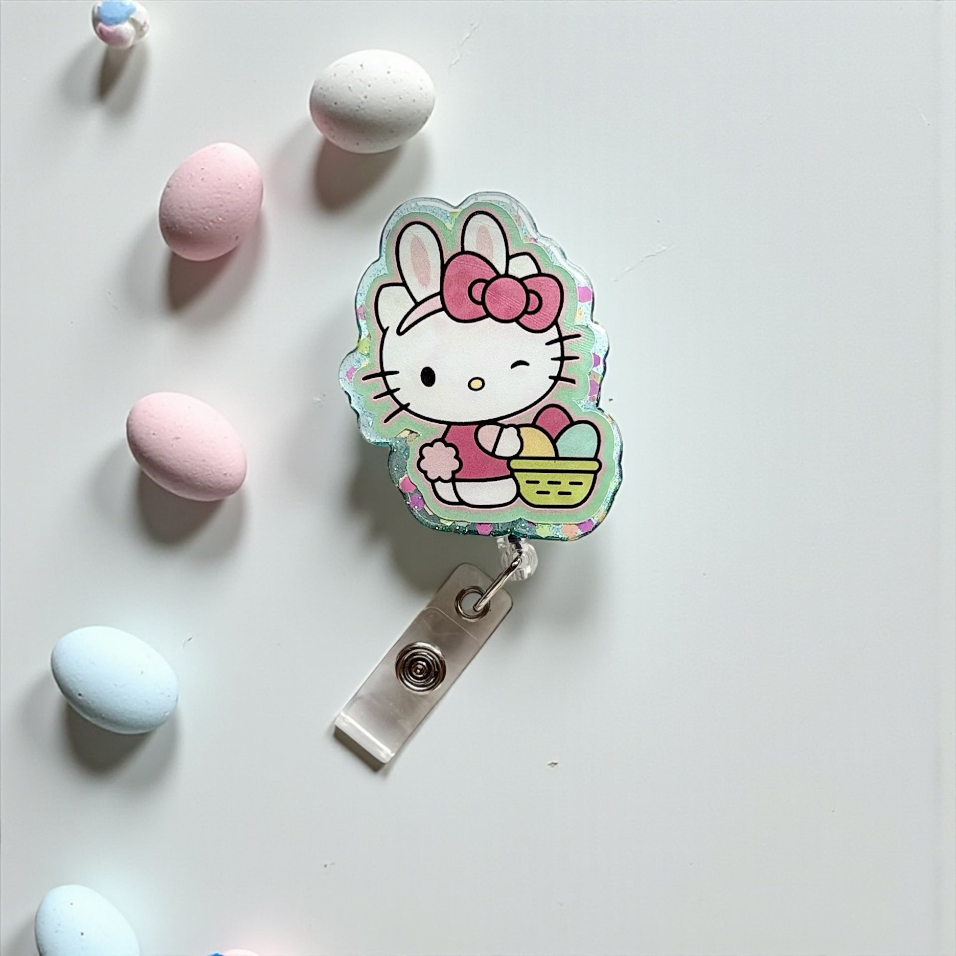 Hop into spring with this adorable bunny-themed badge reel! Featuring a sweet character holding a basket of colorful Easter eggs, this pastel design adds the perfect pop of cheer to your scrubs or work uniform.