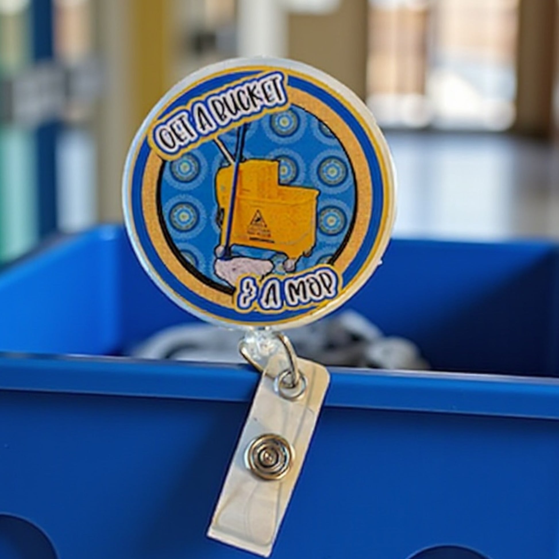Show love for the unsung heroes of every facility with this vibrant Environmental Services badge reel.