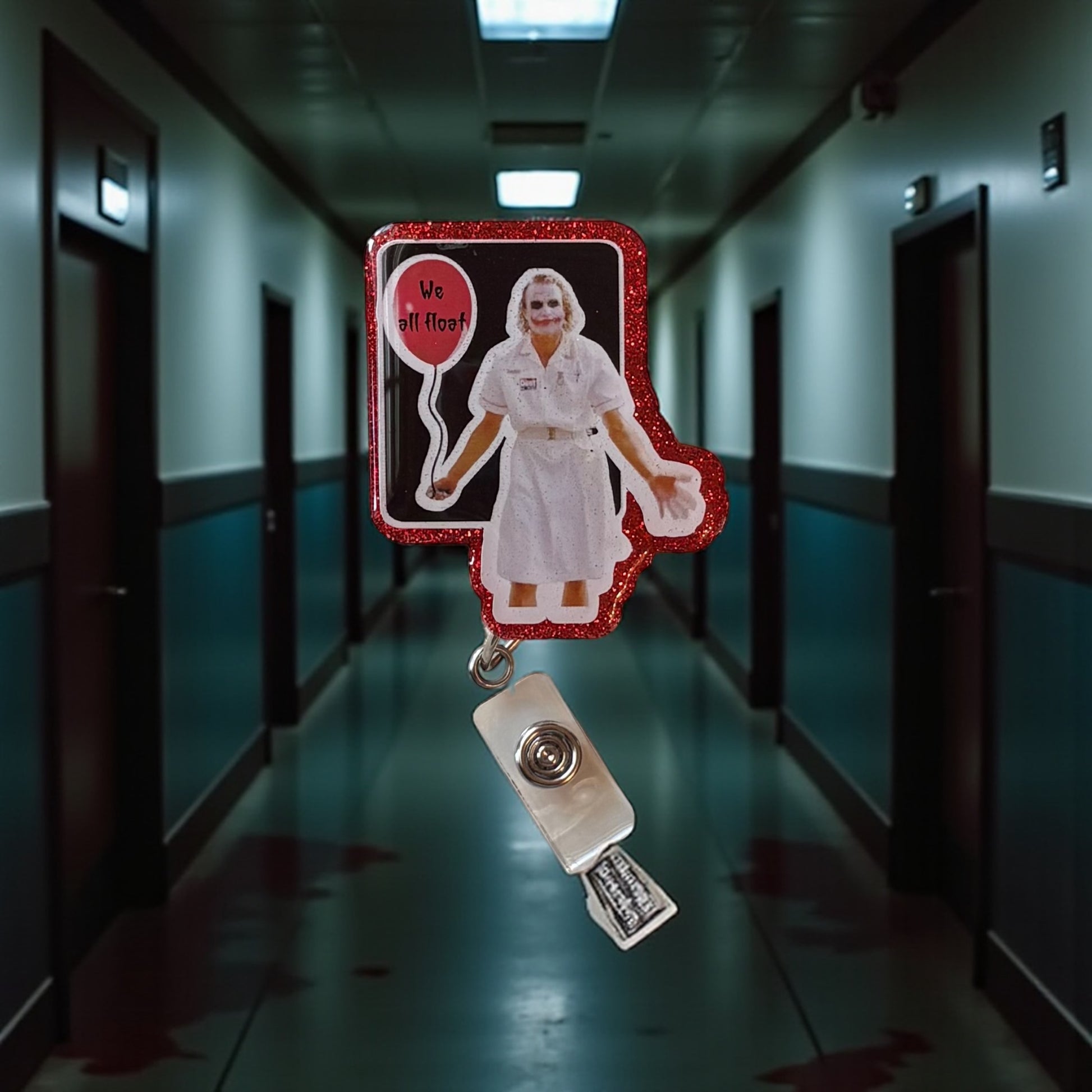 Turn your badge into a conversation starter with this horror-inspired badge reel! 🎈 Featuring a creepy nurse holding a red balloon with the chilling phrase “We all float”, this retractable ID holder is perfect for spooky season—or year-round if you’re a true horror fan.