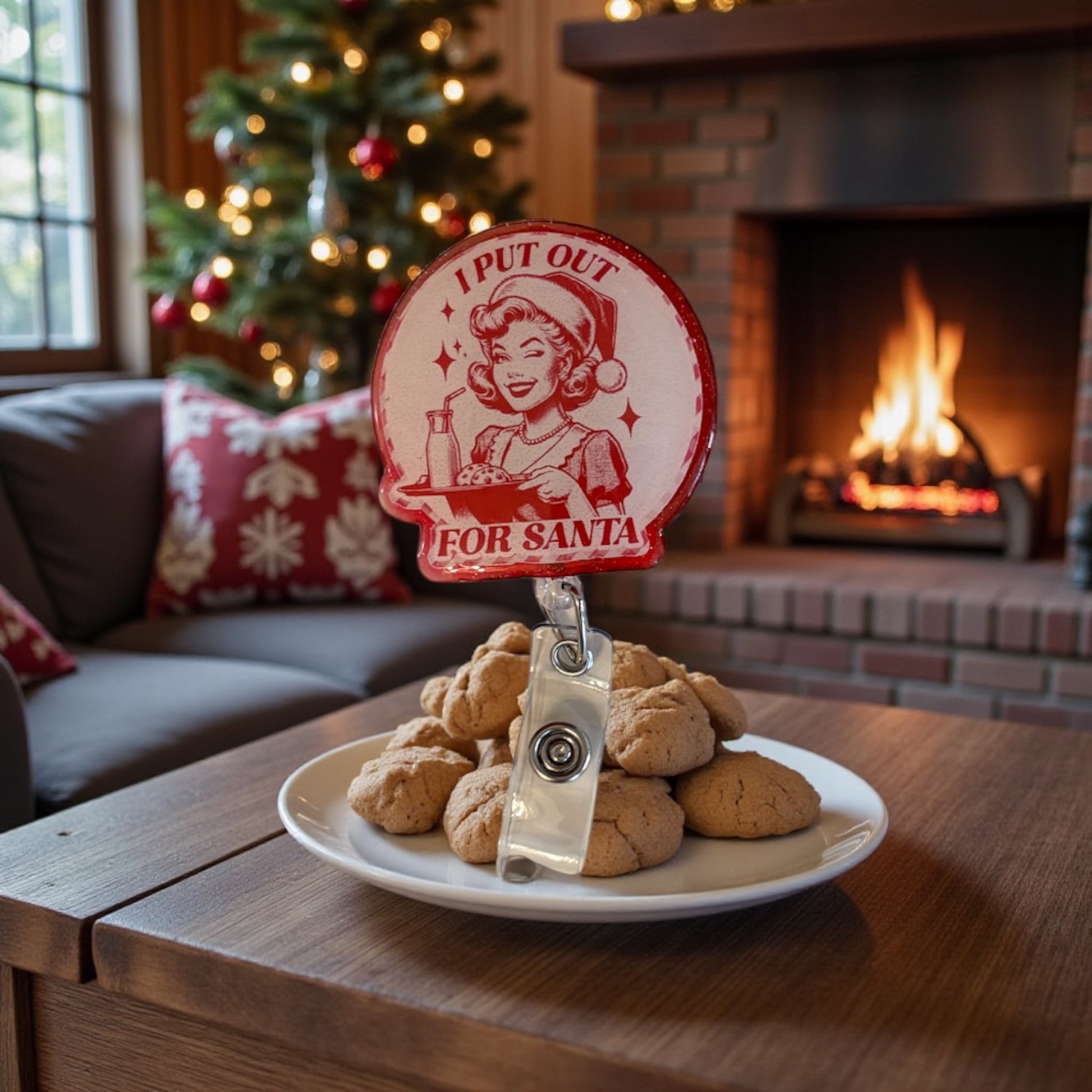 Funny Christmas Badge Reel – Retro “I Put Out for Santa” Nurse ID Holder