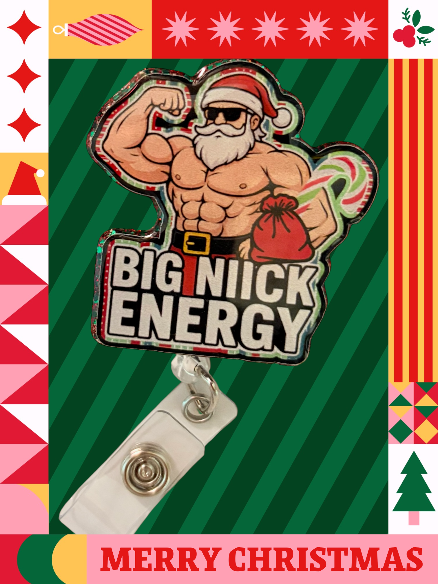 Perfect for nurses, teachers, and anyone who needs their badge reel to be as extra as their Christmas playlist.