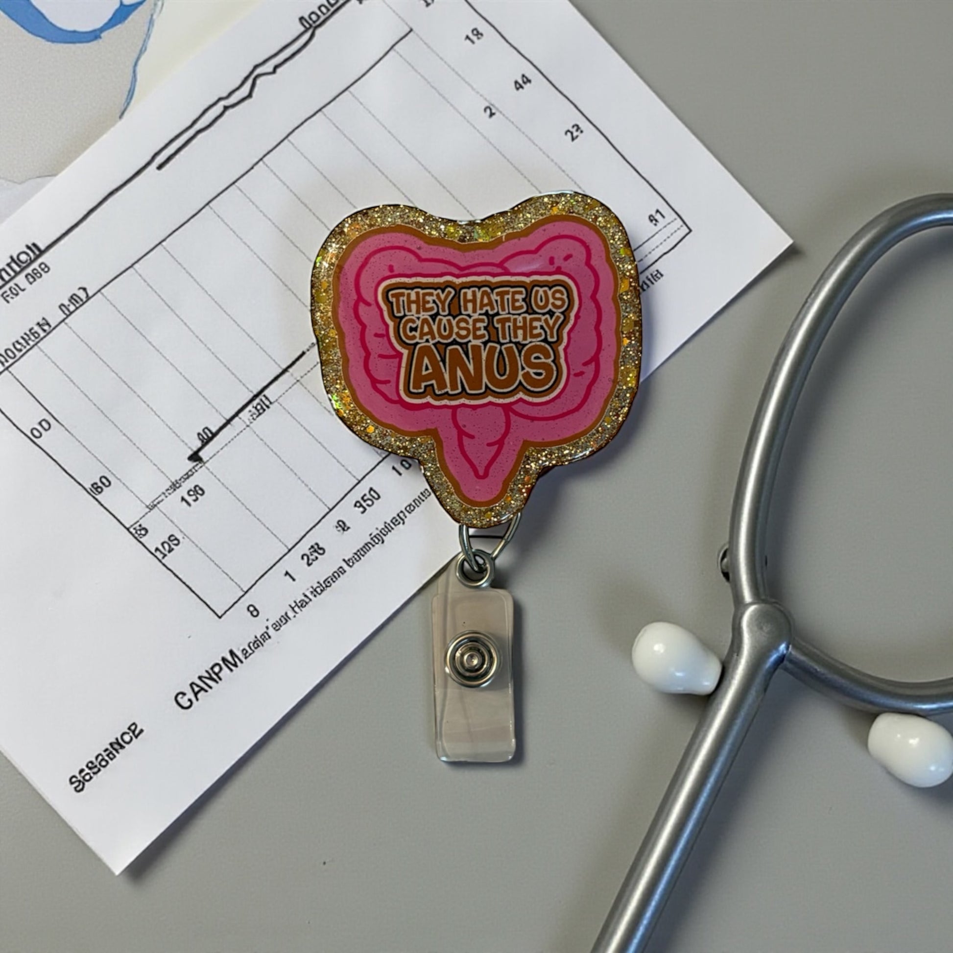 Add some unapologetic humor to your workday with this hilarious badge reel. Perfect for nurses, GI/colorectal staff, medical pros, or anyone who loves a little cheeky fun (pun intended).
