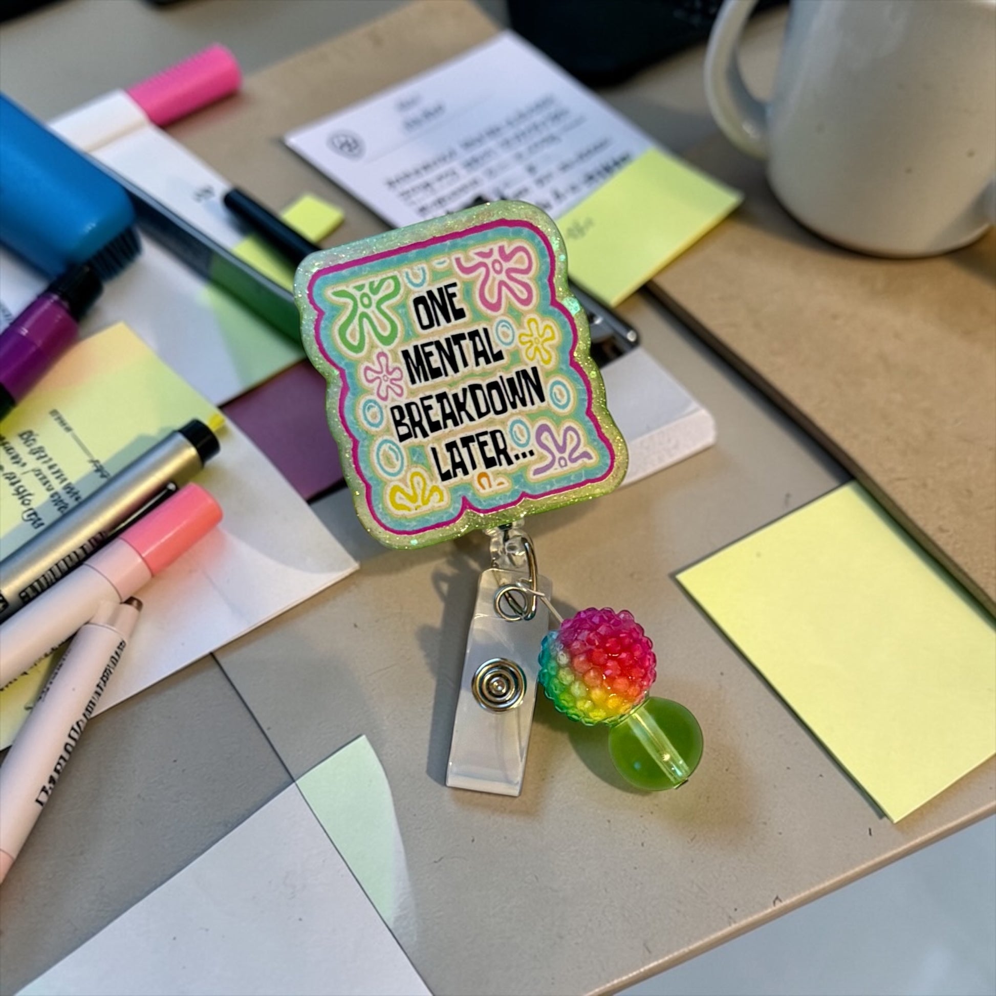 One Mental Breakdown Later – Glitter Retro Floral Badge Reel