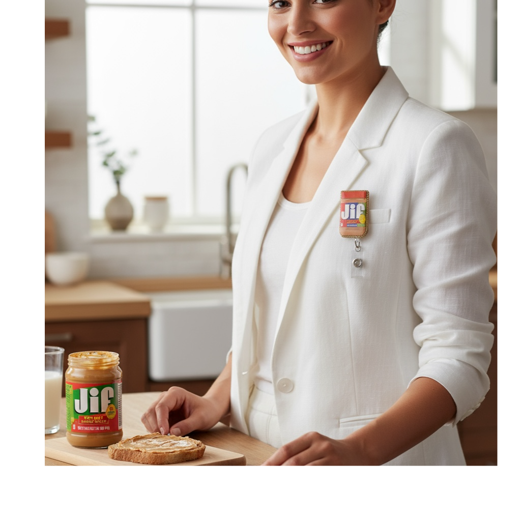 Spread a little joy at work with this Jif Peanut Butter badge reel! Designed to look just like the classic jar of creamy peanut butter, this retractable ID holder is a fun and functional way to keep your badge close at hand. Perfect for nurses, teachers, office staff, or anyone who loves PB&J vibes, it’s both nostalgic and practical.